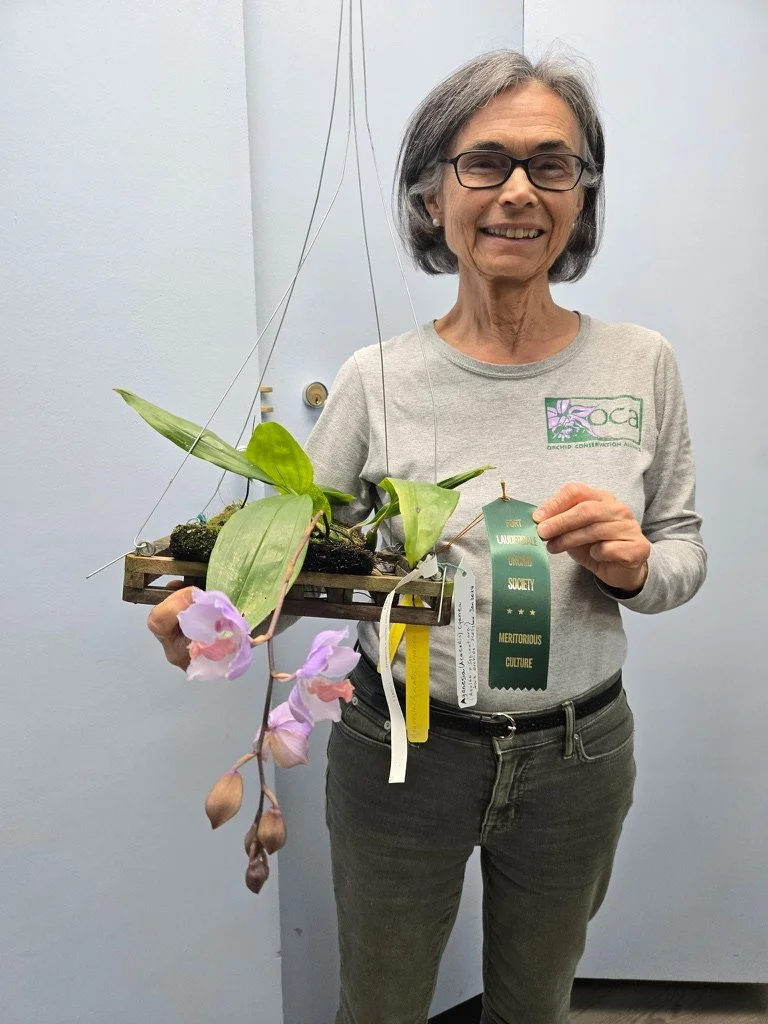 The orchid was grown by South Florida orchidist Doreen Christensen, adding a meaningful connection to the grower behind the bloom.